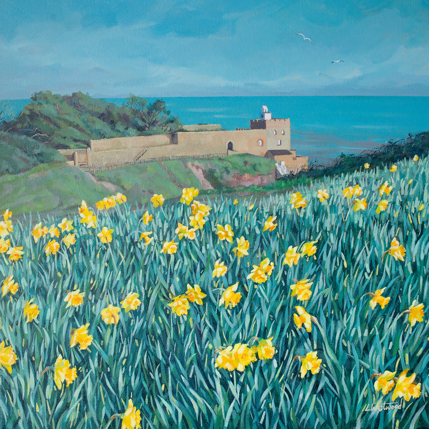 ‘Sidmouth Daffodils’, acrylic on canvas. A painting from early last spring when the blanket of blooms on Peak Hill were at their spectacular best. Click here for the history of Sidmouth’s stunning daffodil display.