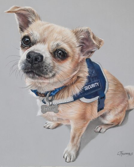 Lorraine is already busy working on commissions in time for Christmas. If you would like to commission a pet portrait this Christmas, now is the time! Here is a recent portrait of ‘Bear’ looking totally adorable.